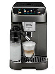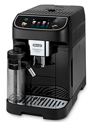 На этот раз к нам на тест приехала кофемашина – полный молочный автомат, представительница новой линейки бренда – Delonghi Magnifica Plus. Модели с таким названием имеют артикулы 320-й серии, всего на момент написания обзора в продаже в РФ встречаются 4 модификации: